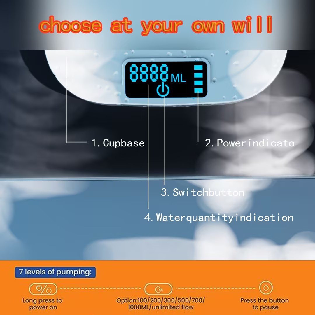 1. 【Intelligent】Intelligent avec 8 niveaux de pompage quantitatif, sélection de capacité en 8 étapes avec voyant lumineux (100 ml, 200 ml, 300 ml, 500 ml, 700 ml, 1000 ml et débit illimité), le distributeur d’eau électrique convient à différents types de bouteilles (1 à 5 gallons).